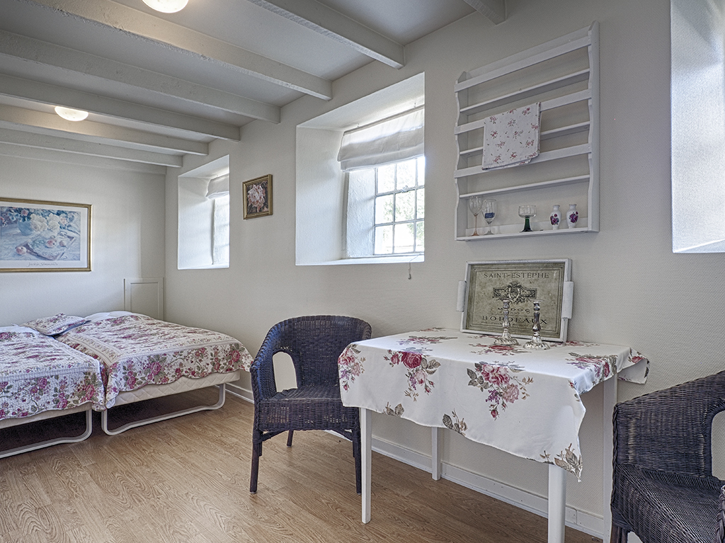 Værelse 2 koster 575,00 kr. pr. nat. Morgenmad er ikke inkluderet i prisen, men kan bestilles.