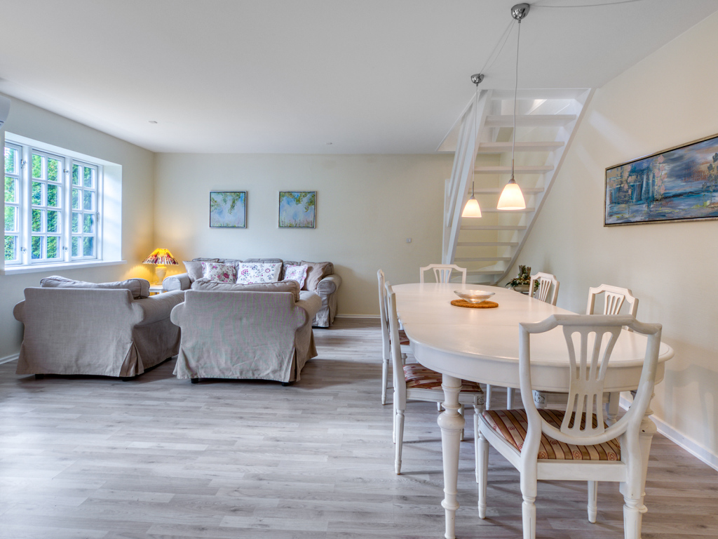 - Hyggelig stue med sofagruppe og spisestuemøbler.
