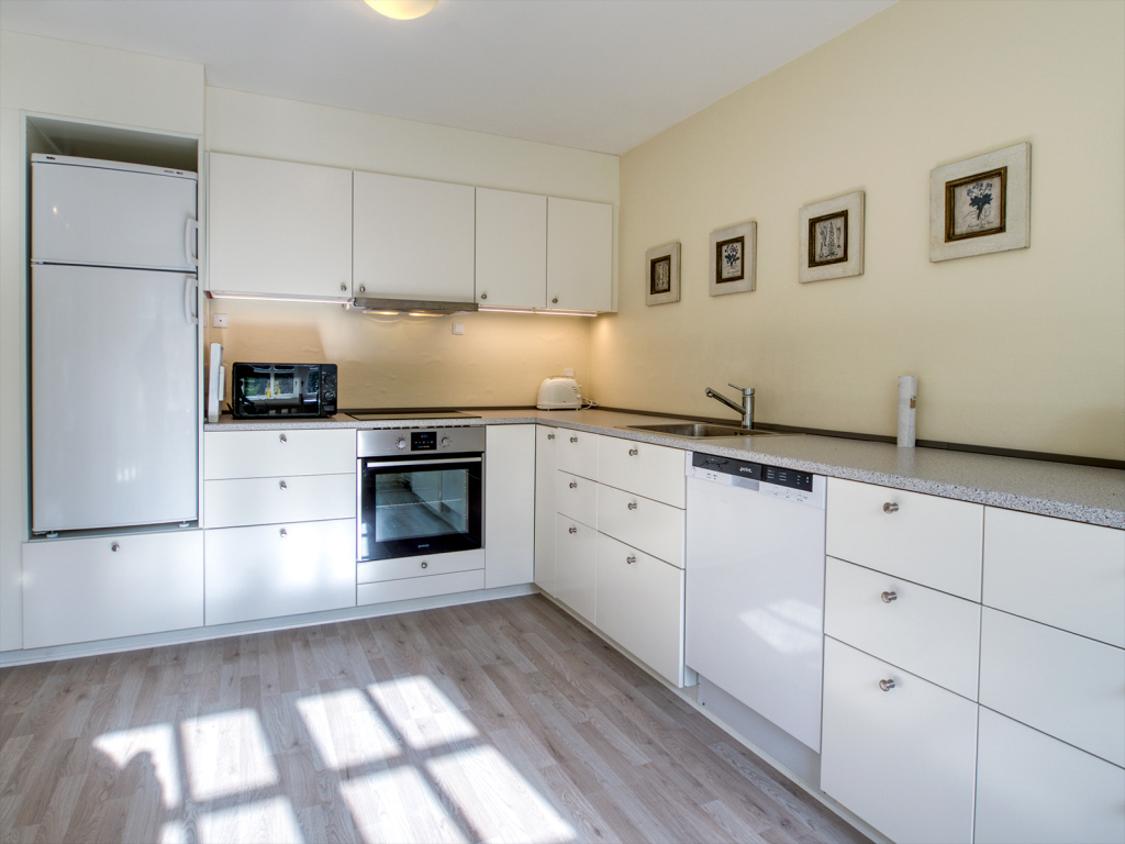 - Helt nyt køkken med kogeplade, ovn, opvaskemaskine, kaffemaskine, mixer og service til 6 personer. Grill i haven.